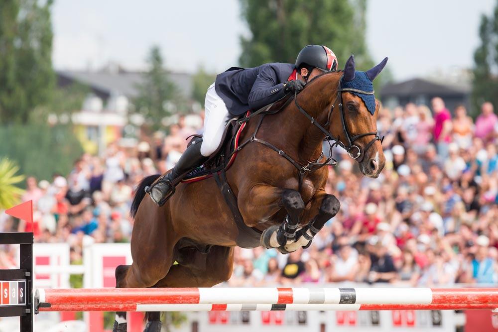Chacco Amicor ZM, OS, geb. 2009, v. Chacco-Blue a.d. Pilotine v. Balou du Rouet, Z.: Gestüt Lewitz, B.: Zdzislaw Mikula, Polen, siegte unter dem Polen Jan Bobik im Finale der Bronze-Tour in Wilkow, einer S*-Springprüfung.