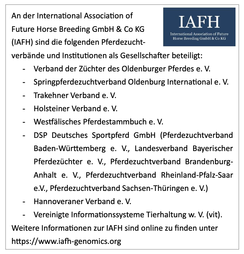Die International Association of Future Horse Breeding GmbH & Co KG (IAFH) setzt sich für den Wissenszuwachs in der Pferdezucht ein und unterstützt die Forschung zu praxisrelevanten Themen. Im Rahmen der 2023 auf Initiative der IAFH gestarteten ECVM-Studie soll zunächst der Frage nach der Häufigkeit des Auftretens der Malformation der unteren Halswirbel beim Warmblutpferd nachgegangen werden. Vorgesehen ist, dass an einer größeren Stichprobe von Warmblütern umfassende Datenerhebungen durchgeführt werden, um aussagekräftige Analysen zum Zusammenhang zwischen Genetik, struktureller sowie klinischer Auffälligkeit zu ermöglichen. Die Pferde werden klinisch allgemein und neurologisch untersucht. Objektive Bewegungsdaten, erhoben unter Einsatz von Sensortechnik, sollen die Datenbasis weiter stärken. Für die Darstellung der strukturellen Beschaffenheit der Halswirbel wird die untere Halswirbelsäule geröntgt, was leistungsstarke Röntgentechnik und Erfahrung des Untersuchers erfordert. SNP-Genotypisierungen werden bei den beteiligten elf Reitpferdezuchtverbänden bereits routinemäßig für die Abstammungsüberprüfung aller Fohlen veranlasst, so dass individuelle genetische Profile vorliegen. Diese können nun in der ECVM-Studie helfen, der für die Veränderungen an den Halswirbeln ursächlichen Genetik auf den Grund zu gehen.