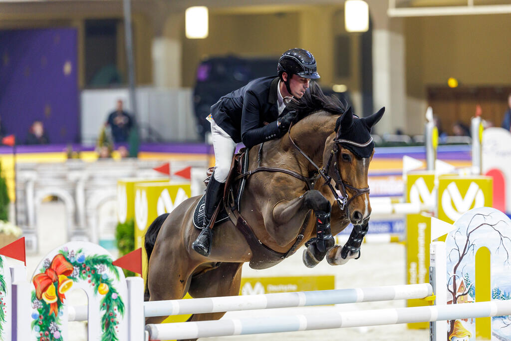 International siegreicher Chacco-Blue-Sohn Veneno, OS, geb. 2008, v. Chacco-Blue a.d. Agranuet v. Baloubet du Rouet - Grannus - Argentinus, Z.: Gestüt Lewitz, B.: Reitsportanlage Dagobertshausen & Co.Kg, Marburg, unter dem Briten Graham Gillespie.