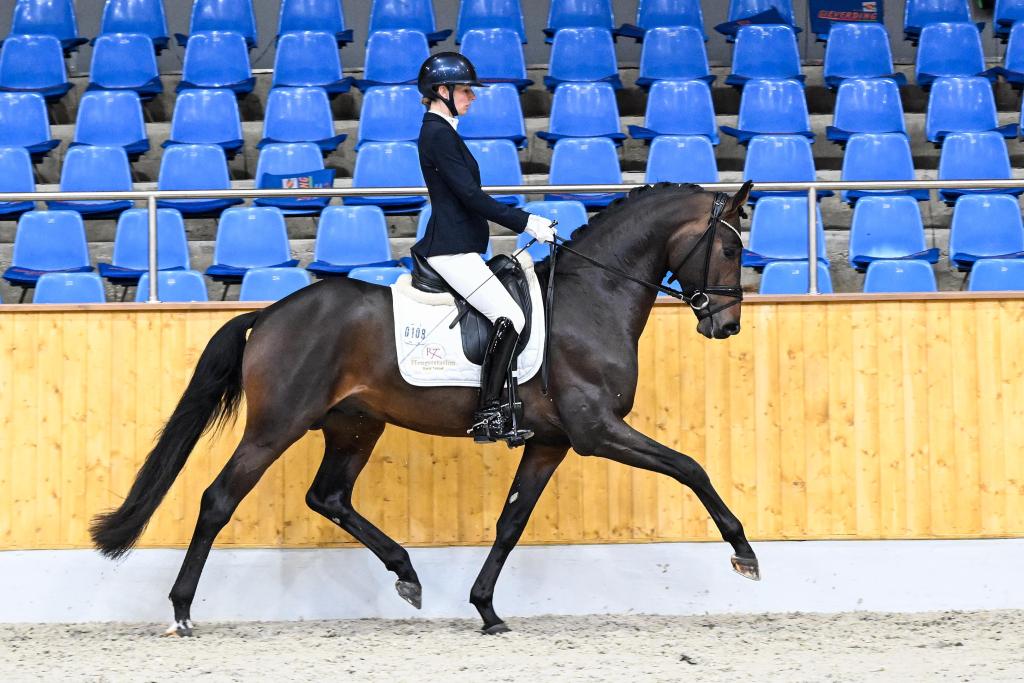Die Hengst Kurz-Veranlagungsprüfung in Vechta führte der bildschöne Oldenburger Dynamic Pur, geb. 2021, v. Dynamic Dream a.d. Finesse v. Finest - Dancier, aus der Zucht von der Wieghaus-Vorwerk GbR, Neuenkirchen Vörden, mit einer Endnote von 8,91 an. Vorgestellt wurde der edle Dynamic Dream-Sohn von Friederike Tebbel.