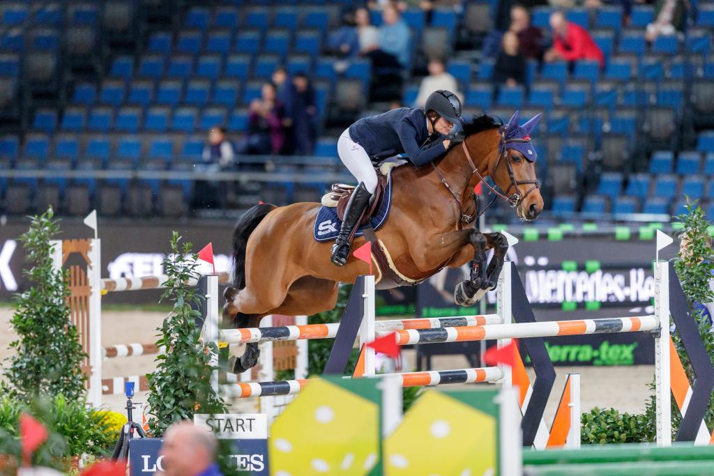 Killer Queen, OS, geb. 2012, v. Chacco Lover a.d. Caroulonia v. Toulon, Z.: Gestüt Lewitz, B.: Elisha Simmons, Großbritannien, überzeugte unter dem Belgier Jérôme Guery auf dem Silberrang sowie auf Platz fünf in 1,45 m-Springprüfungen.