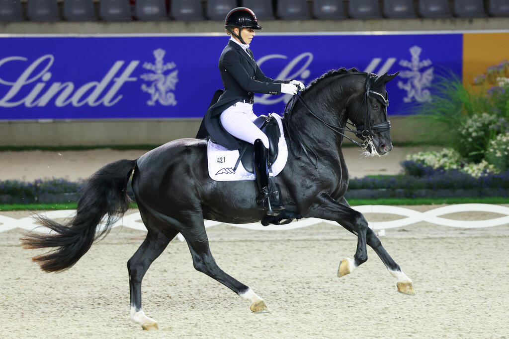 Maxima Bella, geb. 2016, v. El.H. Millennium/Trak. a.d. El.St. Ciao Bella HRH v. Christ - Warkant, Z.: Heiner & Renate Hormann, Landesbergen, B.: Dominika Krasko Bialek & Sandra Sysojeva, Polen, jubelte mit ihrer Reiterin Sandra Sysojeva aus Polen mit Silber in einem ****Grand Prix belohnt.