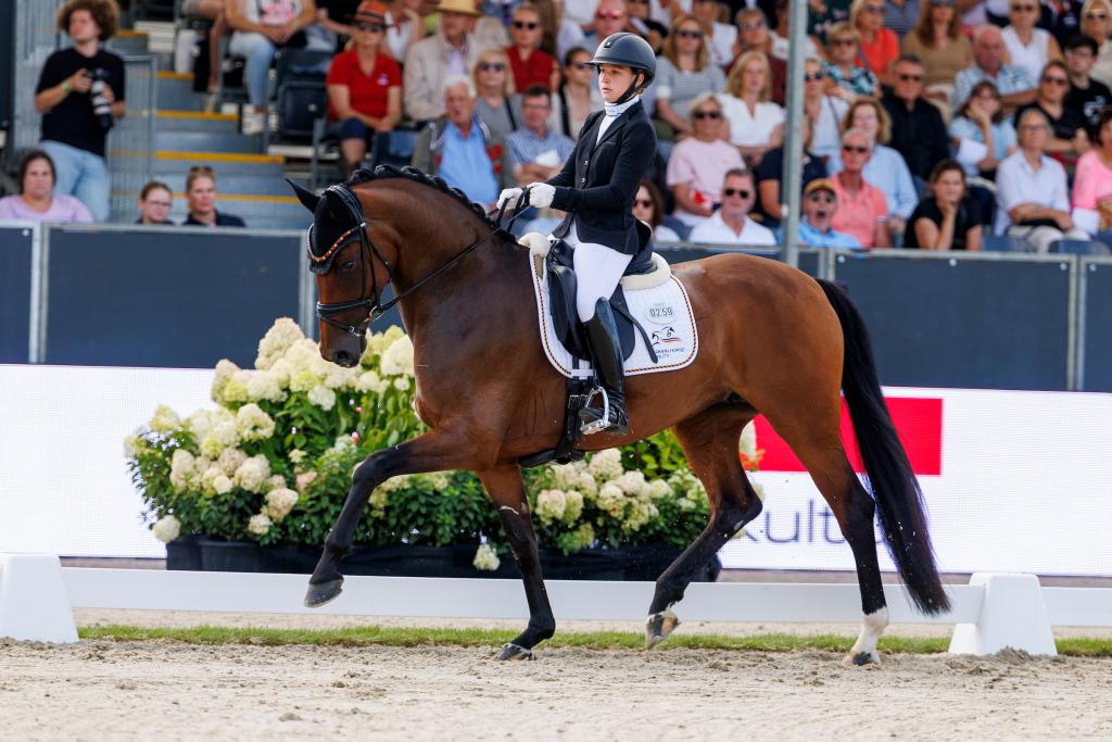 Ferdinand De Fontaine v. Franklin a.d. El.St. Wendy v. Sezuan, Z.: SCEA Domaine Fontaine L’Abbé, Frankreich, B.: Helgstrand Dressage, rangierte mit Merita Hagren an elfter Stelle im Finale der fünfjährigen. Mutter Wendy de Fontaine gewann die Silbermedaille bei den Olympischen Spielen in Paris im vergangenen Jahr. Ferdinand De Fontaine wurde 2022 gekört. Mutter Wendy stellt zudem Sénégal de Fontaine v. Springbank II.
