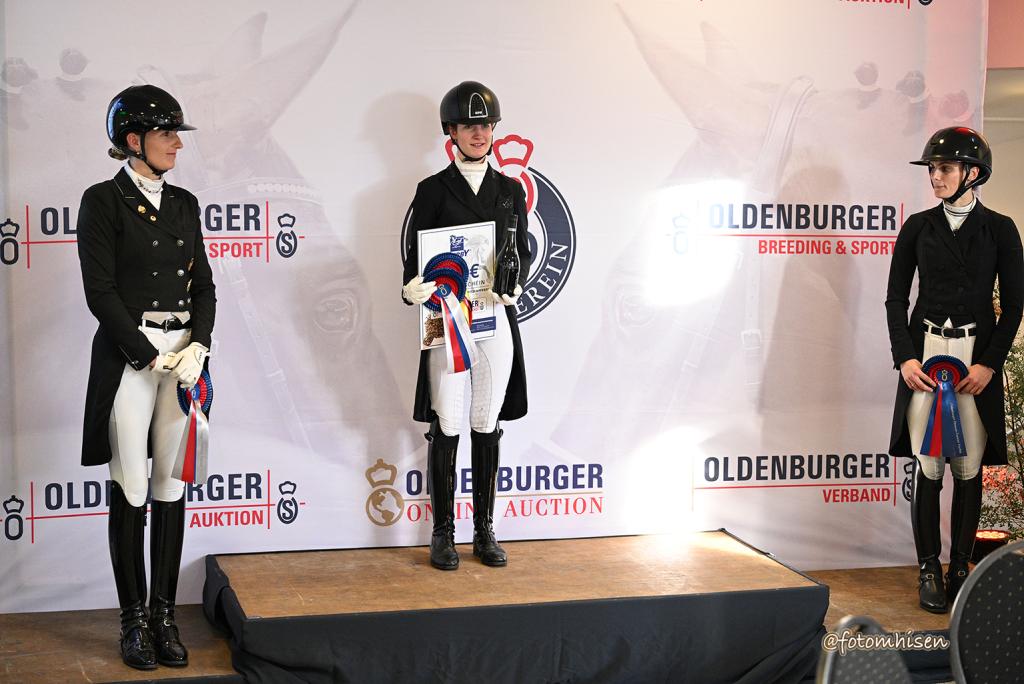 Am Freitag wurde im Oldenburger Pferde Zentrum Vechta die erste Qualifikationsprüfung ausgetragen. In der Dressurpferdeprüfung der Klasse S setzte sich die 8-jährige Weihtastic OLD v. Totilas x De Niro unter Alina Schneider mit 8,16 gegen die Konkurrenz durch. Die Totilas-Tochter, gezüchtet und im Besitz von Christine Arns-Krogmann, ist eine Urenkelin der Weltklasse-Dressurstute Weihegold OLD. Auf dem zweiten Platz folgte mit 8,12 Leonie Richter mit dem siebenjährigen Oldenburger Summerglow OLD v. Secret x Dancier, Z.: Klaus Michaelis. Der dritte Rang ging erneut an ein Pferd aus der Zucht von Christine Arns-Krogmann: Weihvirgin OLD v. Vitalis x Fürst Heinrich, eine Enkelin der Weihegold OLD, ebenfalls vorgestellt von Alina Schneider. Damit qualifizieren sich Weihtastic OLD und Summerglow OLD für das Finale. Nach dem gelungenen Auftakt stehen nun fünf weitere Qualifikationsturniere an: