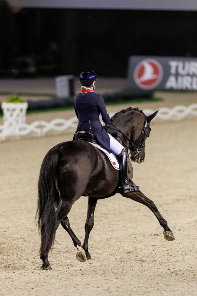 Maxima Bella, born 2016, by El.H. Millennium/Trak. by El.St. Ciao Bella HRH by Christ - Warkant, bred by Heiner & Renate Hormann, Landesbergen, owned by Dominika Krasko Bialek & Sandra Sysojeva, Poland, danced to bronze in the Grand Prix and sixth place in the World Cup Freestyle under Sandra Sysojeva from Poland. Maxima Bella already shone at the Olympic Games in Paris, finishing 15th in the individual final.