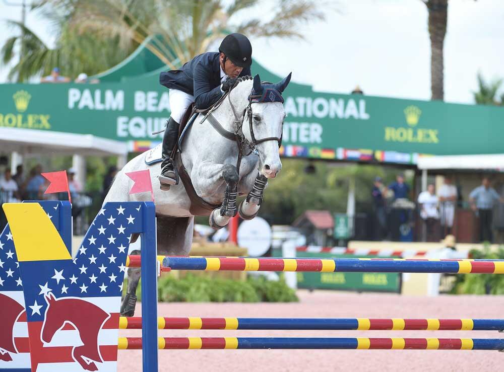 Chaccana, OS, geb. 2007, v. Chacco-Blue a.d. Gold Anna v. Kannan, Z.: Gestüt Lewitz, B.: Tomboy Farms, USA, und Enrique Gonzalez triumphierten in einer 1,40 m-Springprüfung.